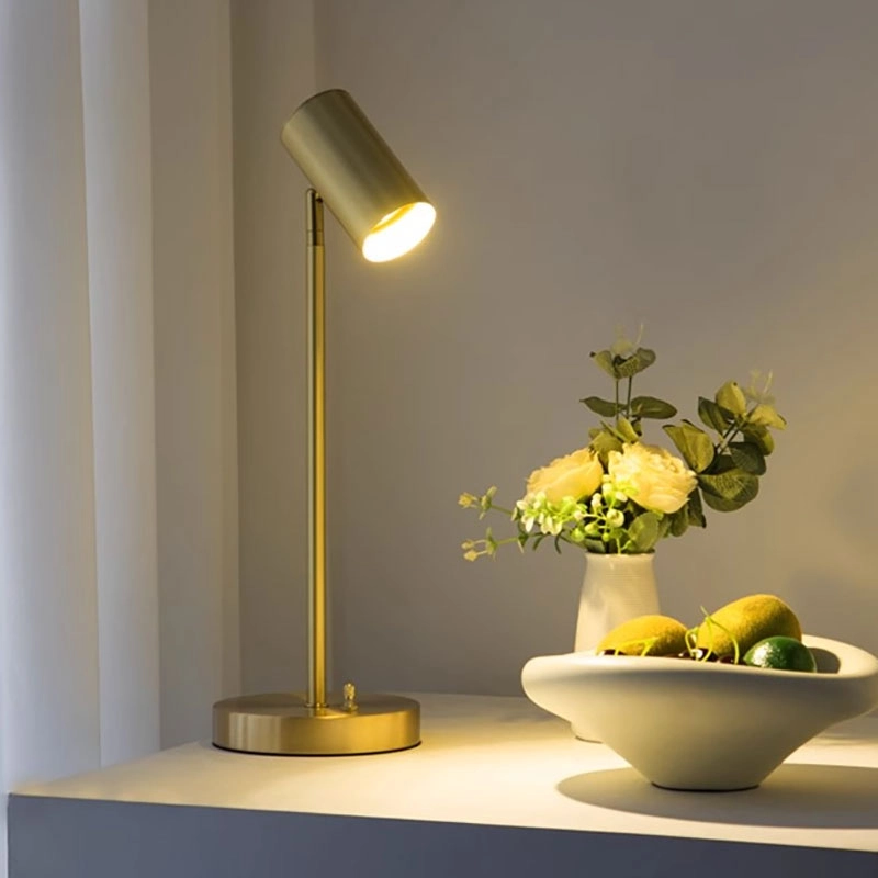 Enhance your decor and home style through the simple sophistication of the Modern Minimalist Brass Table Lamp! This lamp embodies timeless minimalist style in a classic and durable brass. The crafted cylindrical shade and slim vertical stem will leave a bold presence with its modern architectural feeling in any space.